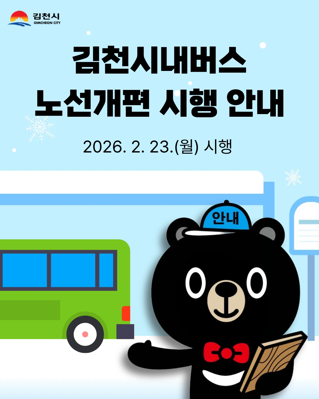 [김천=이화조 기자] 김천시는 오는 23일 자로 시내버스 노선을 대대적으로 개편한다. 이번 노선 개편은 변화하는 교통 환경에 대응해 시민 중심의 효율적인 대중교통 서비스 제공에 중점을 뒀다.