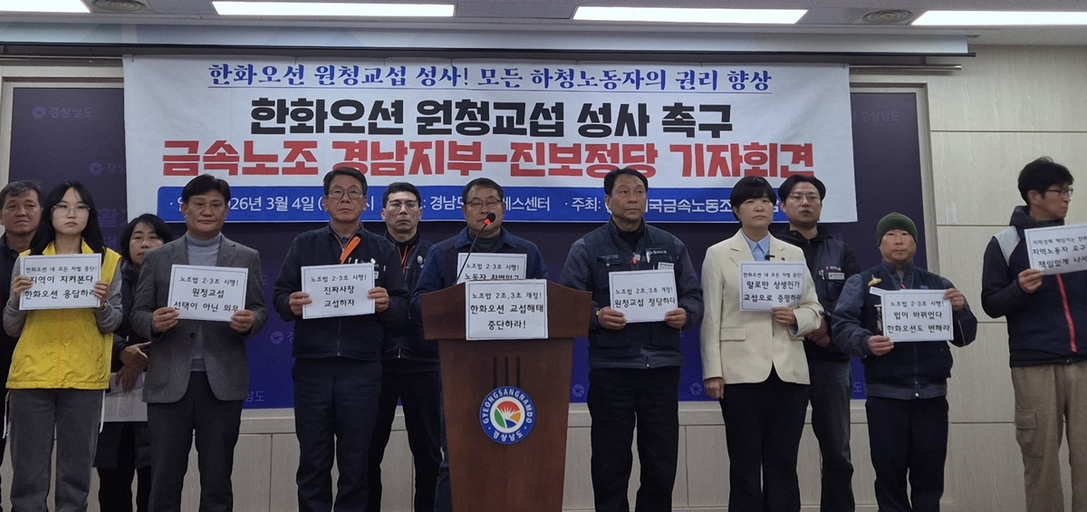 이어 "원청 교섭 요구는 법률적 정당성에만 그 이유가 있는 것은 아니라, 청년 일자리를 찾아주고 지역 경제를 살리는 일이기도 하다"며 "한화오션은 원청 교섭에 나서야 한다"고 강조했다.