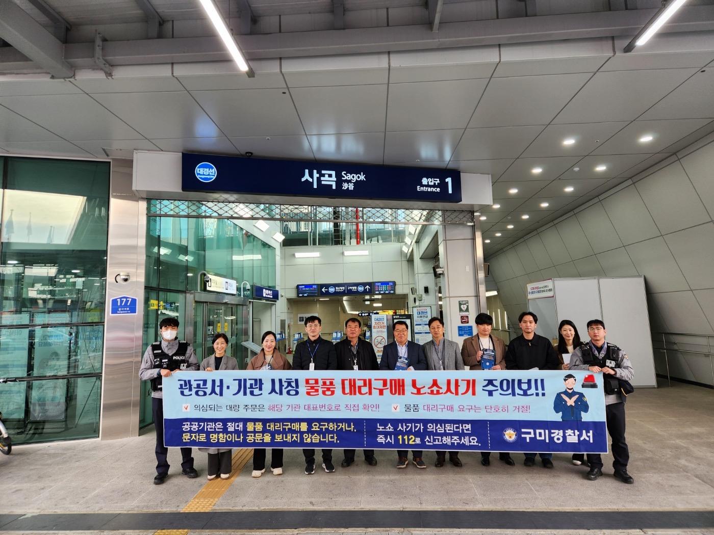 이에, 구미경찰서 수사1·2과는 지난 19일 오후 관내 치안수요가 가장높고 상가가 밀집된 인동·진평동 ▵음식점▵건설업체▵숙박업체 등주요 업체를 직접 방문해 노쇼사기 예방 안내문 및 홍보물품(접이식 장바구니, 물티슈)를 배포하고 20일과 23일에는 출근 시간대 유동인구가 많은 광역철도선(구미역, 사곡역)앞에서 노쇼사기 예방을 위한 캠페인을 펼쳤다.
